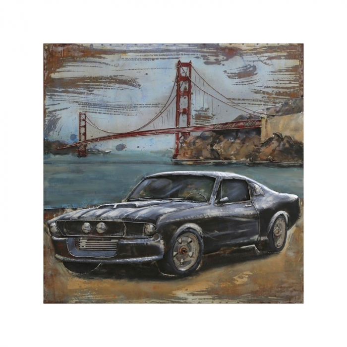 Mustang este un tablou metalic 3D, o imagine in relief ilustrand un autoturism Mustang.