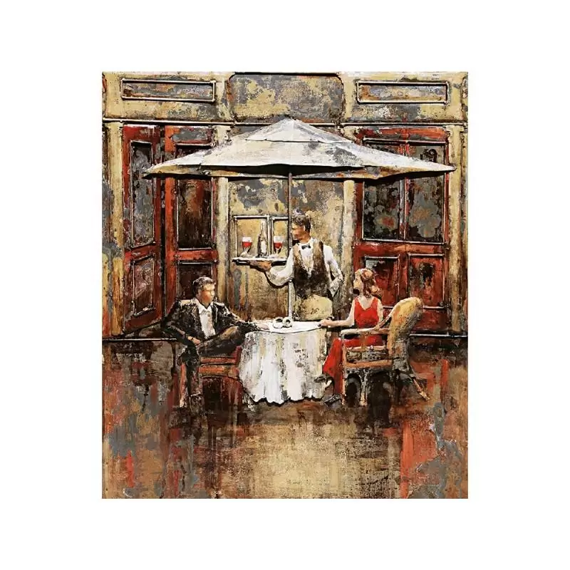 Terras este un tablou metalic 3D, o imagine in relief ilustrand terasa unei cafenele.