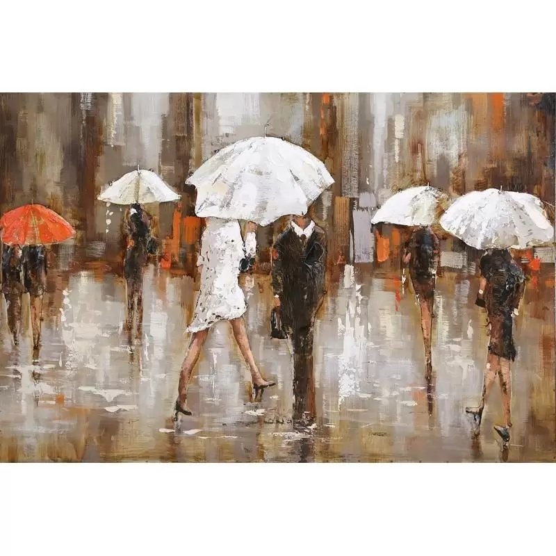 Umbrella's este un tablou metalic 3D, o imagine in relief ilustrand 7 persoane cu chipul acoperit de umbrele.