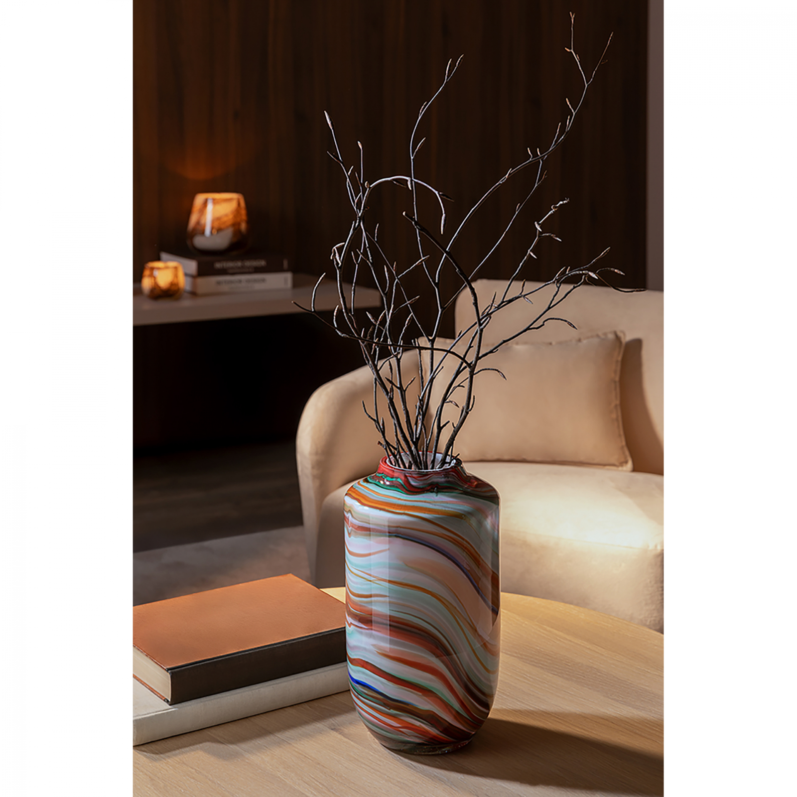 SANCHO, Vază, Sticlă opal, netedă, multicoloră, L. 18,5 cm, L. 18,5 cm, H 27 cm, D 18,5 cm