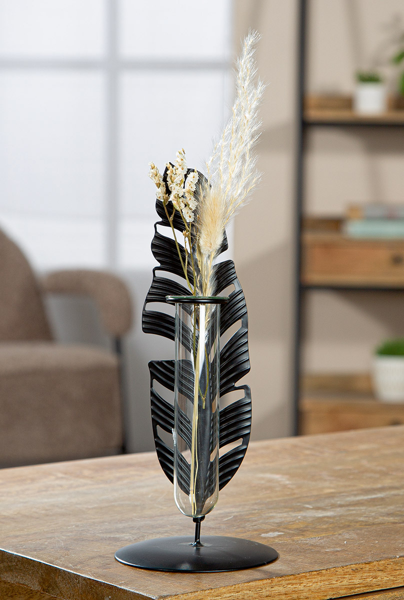 Vaza, Frunza, Jakarta, Metal, negru, PU 12, H. 22 cm, D. 9 cm