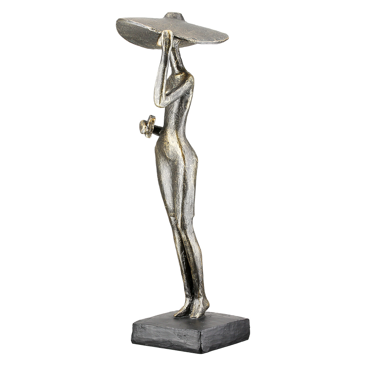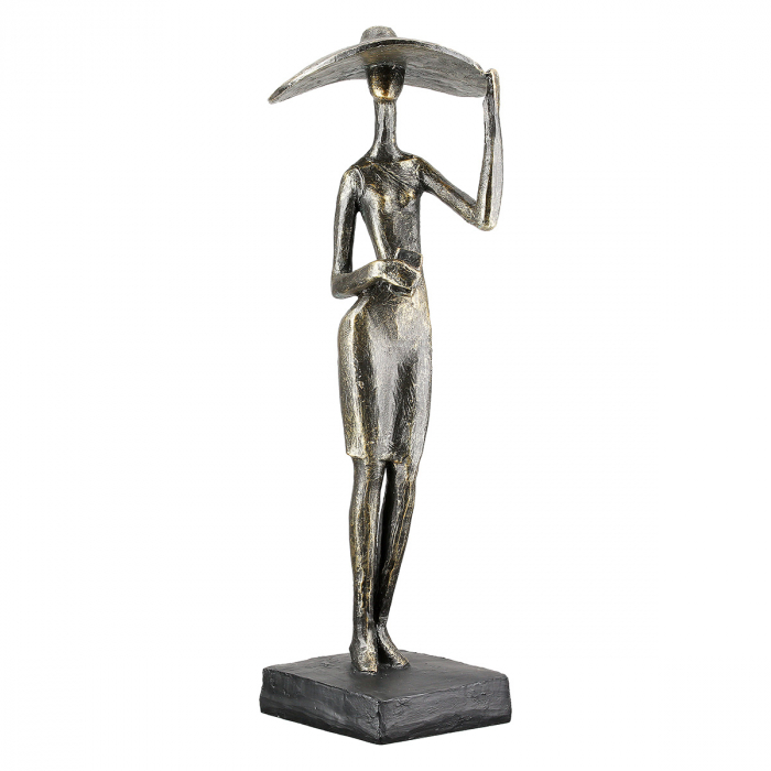 Sculptură, Femeie, Doamnă cu pălărie, Motiv pălărie, Polirășină, bronz, PU 1, L. 9 cm, L. 8,5 cm, H. 33 cm