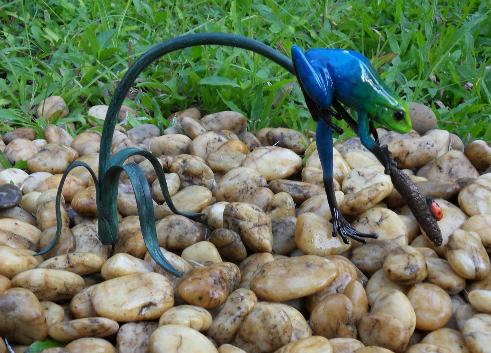 Thermobrass Statuie broasca de padure bleu pe crenguta, Bronz, 13 x 13 x 26 cm