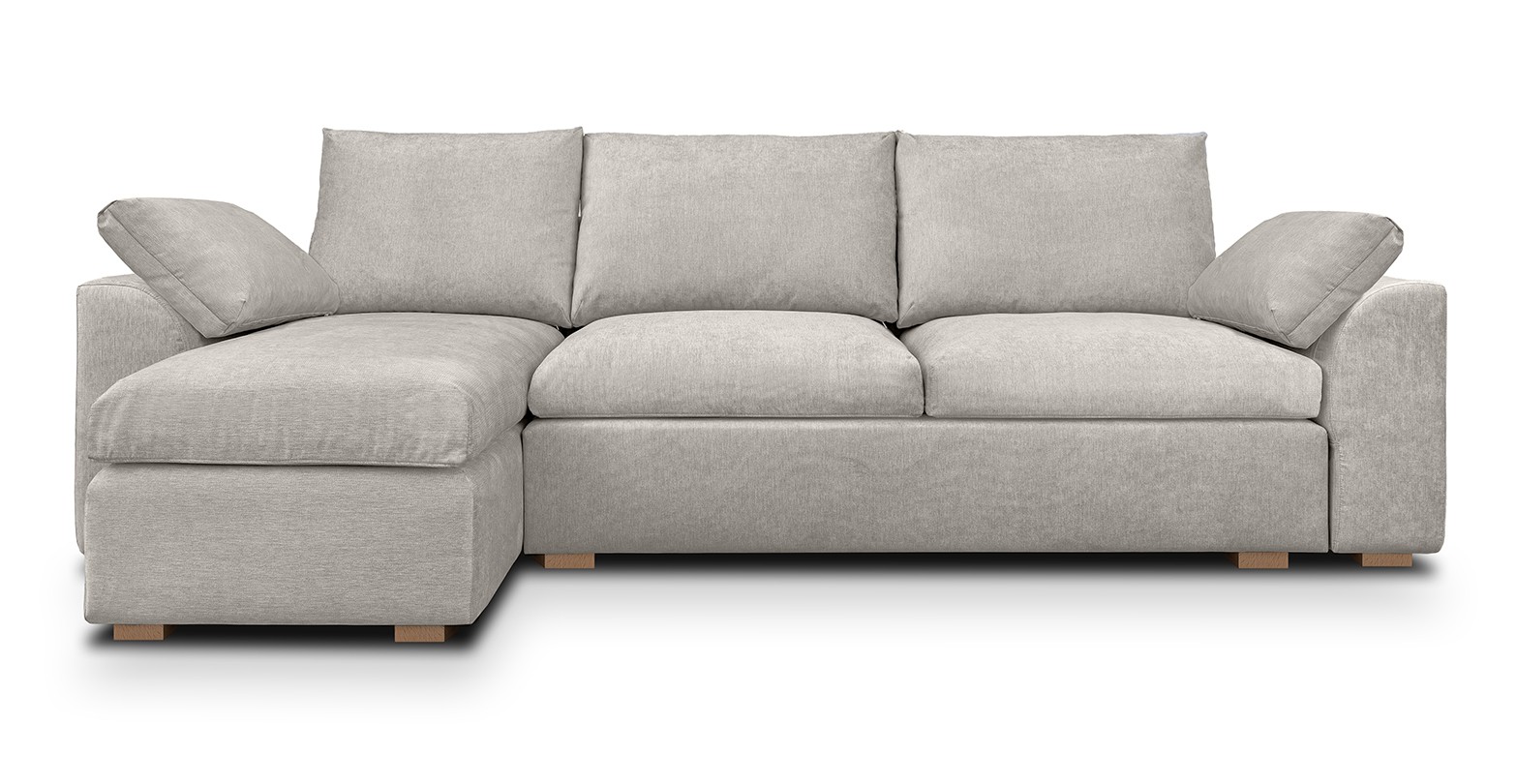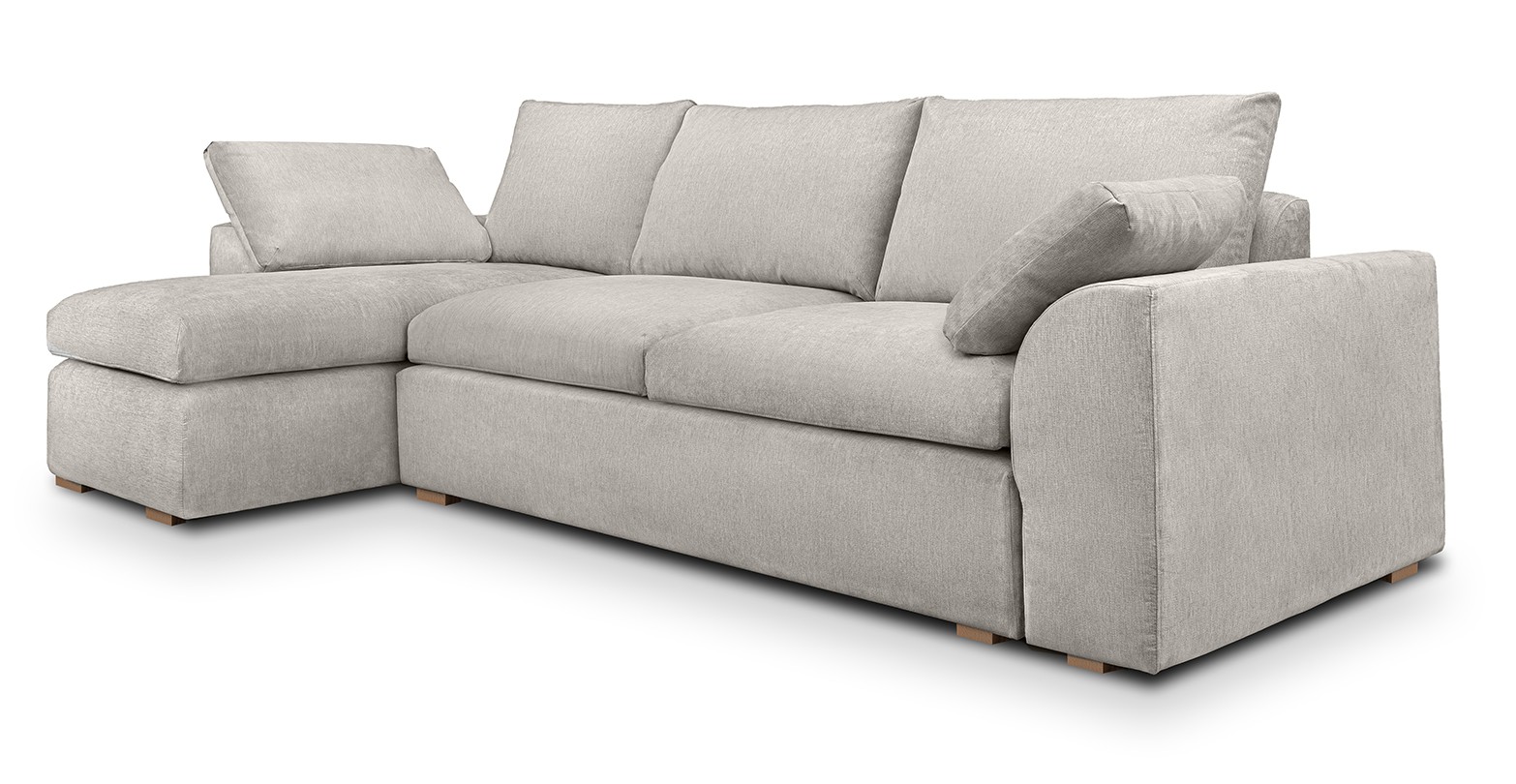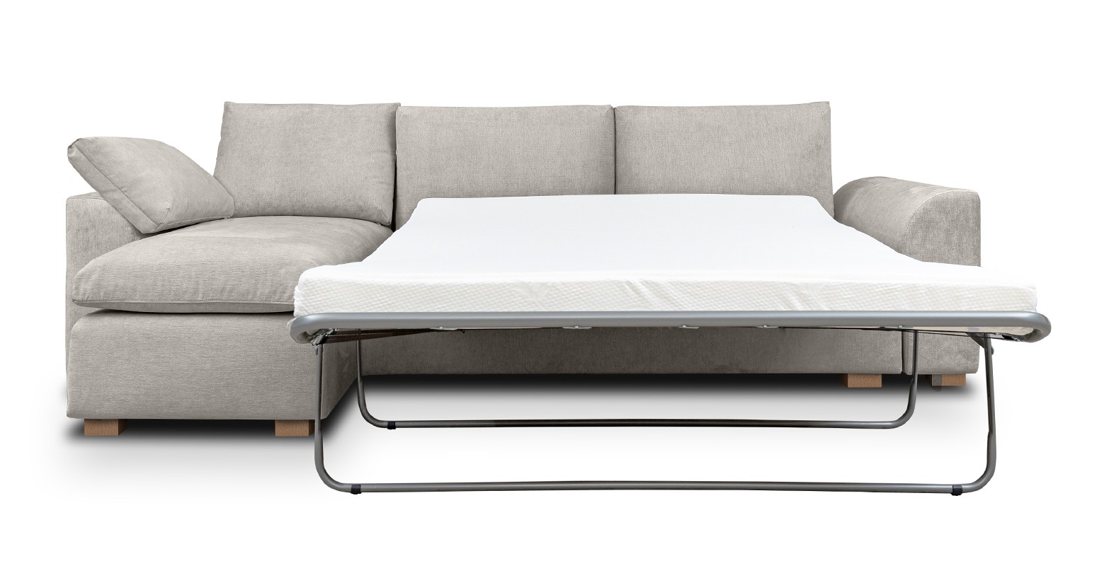 Datorită confortului ridicat, șezutului foarte generos și mixului de materiale pe care le are în componență, canapeaua oferă o senzație de scufundare într-o oază de relaxare, fiind unul dintre cele mai confortabile și practice produse ale colecției. Confortul și estetica sunt completate de șezlong și de funcția extensibilă a canapelei, care încorporează un dormitor relaxant, cu saltea din spumă de înaltă reziliență și husă detașabilă din poliester.
