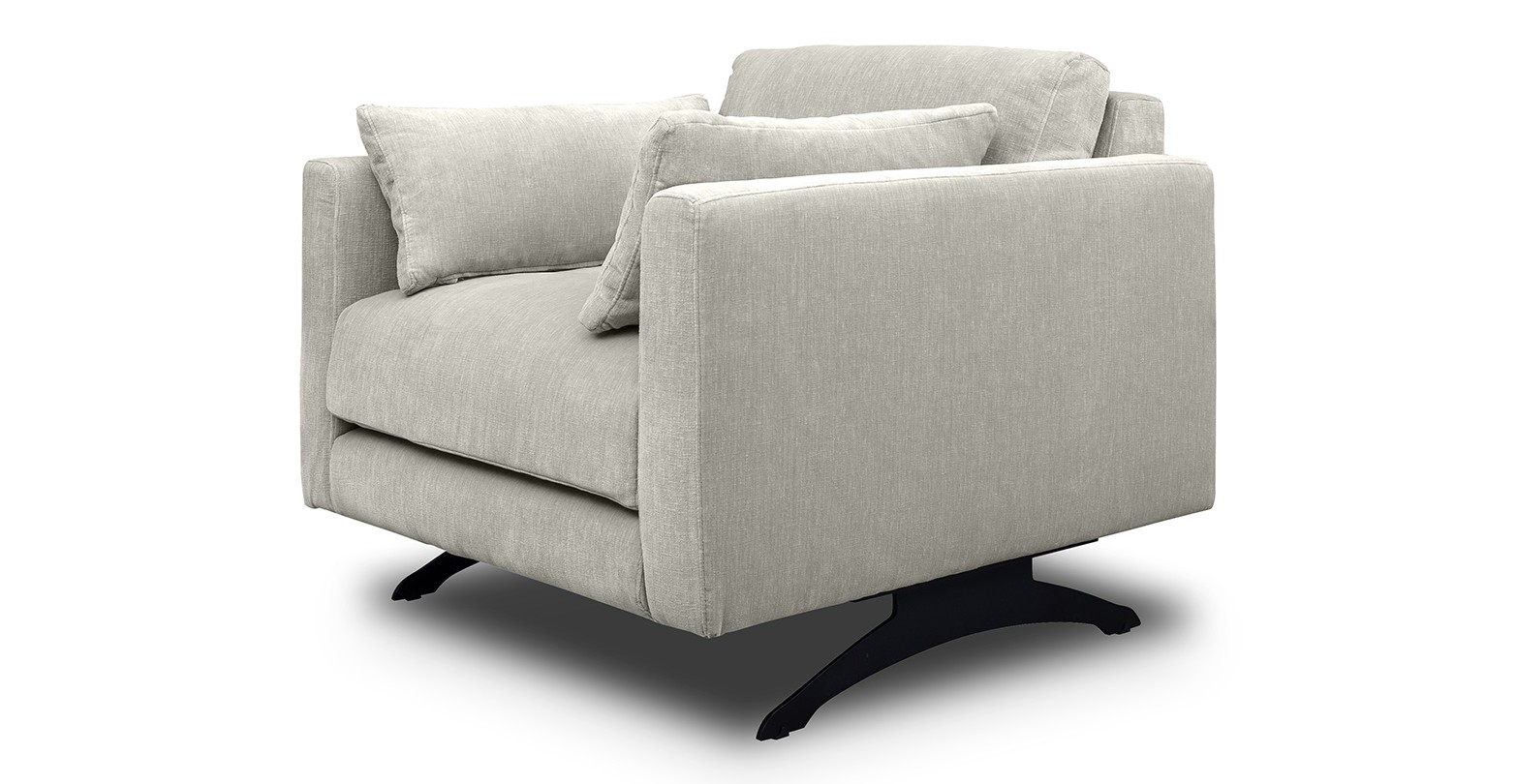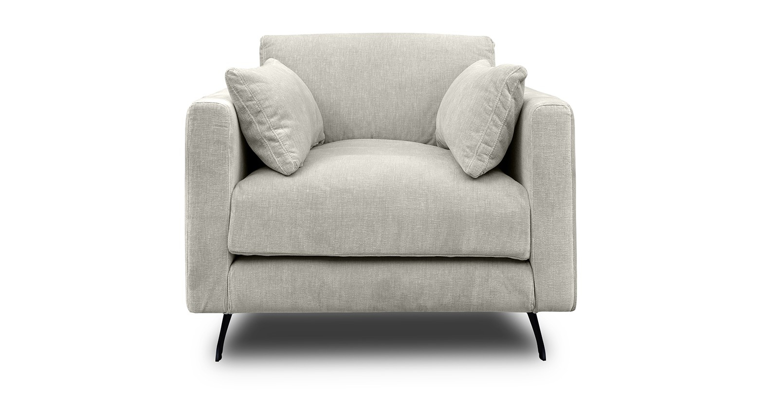 Fotoliu tapitat Moft este un fotoliu ultra-modern, cu picioare metalice negre si care vine însotit de doua perne în plus.