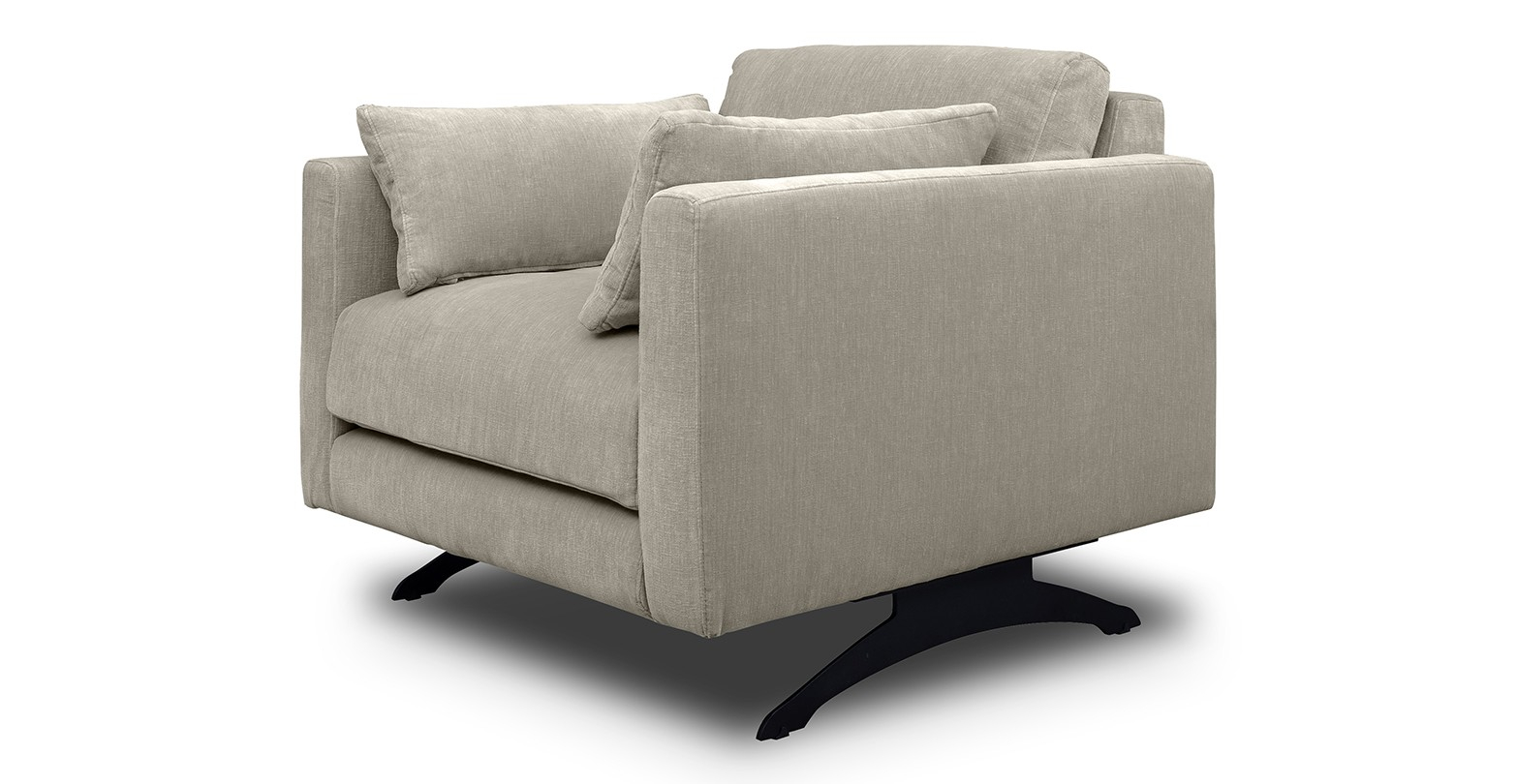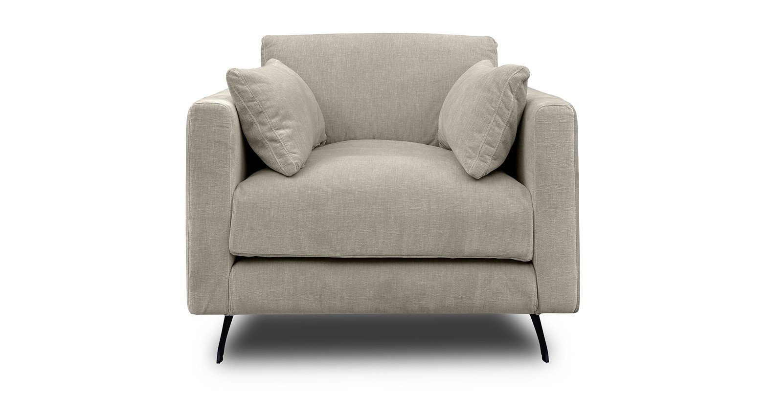 Fotoliu tapitat Moft este un fotoliu ultra-modern, cu picioare metalice negre si care vine însotit de doua perne în plus.