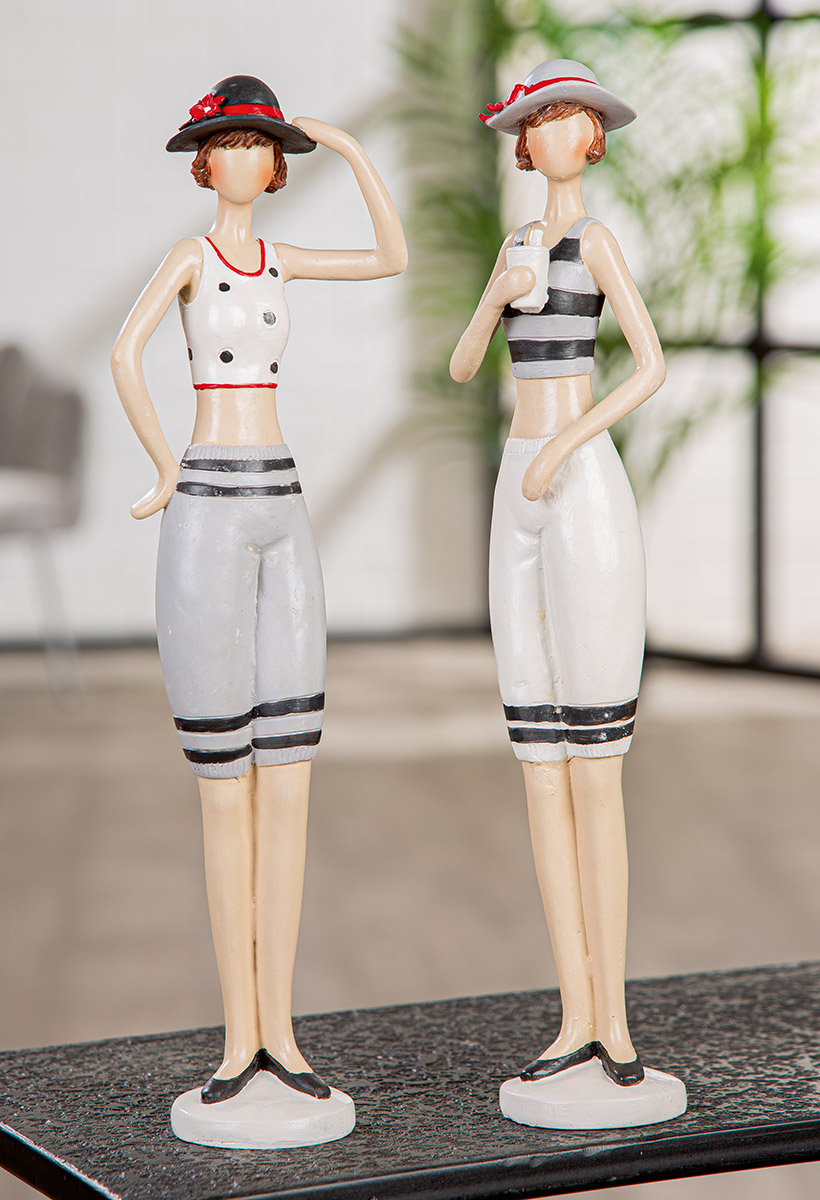 Figurină, Sirenă, Motiv pălărie, punctată, dungi, Rășină sintetică, crem, gri, PU 2, 2 asortate, L. 7 cm, L. 12 cm, H 37 cm