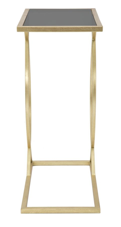 Masa din metal si sticla. Liniile sinuoase impletite cu forme geometrice creeaza un design unic. Aurul combinat cu negrul creeaza un impact puternic. Un element de lux si glam pentru casa ta