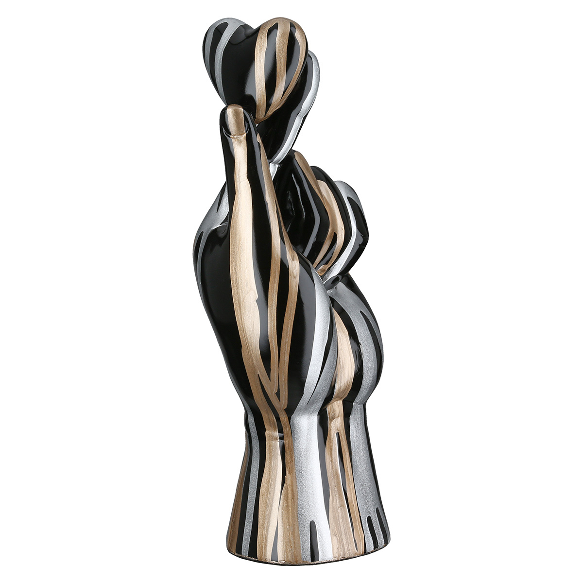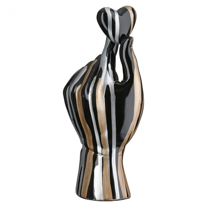 Obiect decorativ, Mână, Motiv inimă, Model liniar, Rășină sintetică, negru, PU 2, L. 8 cm, L. 11 cm, H 26 cm