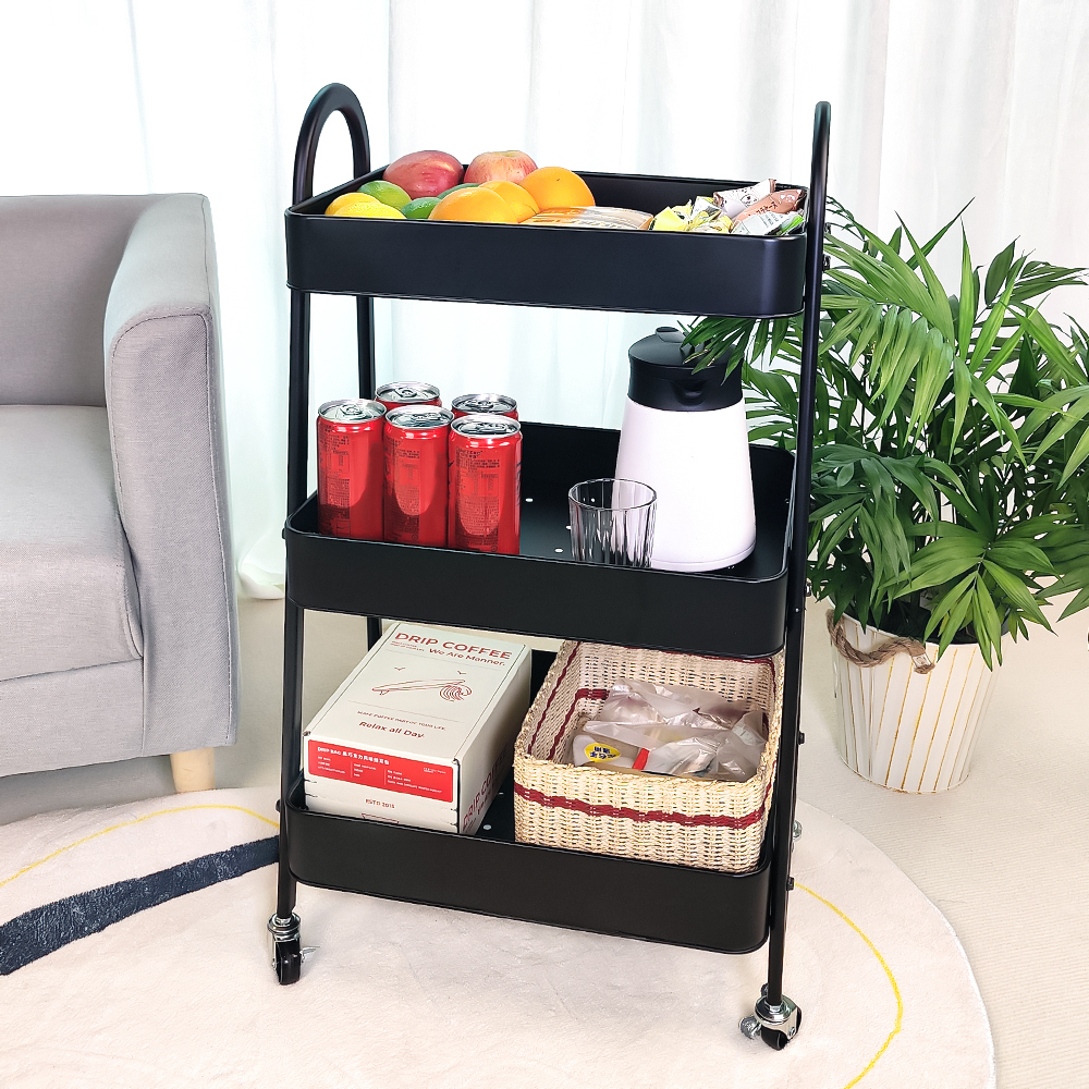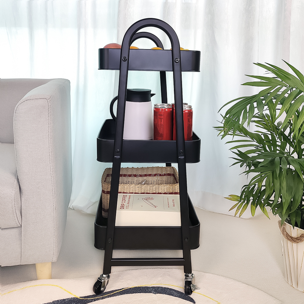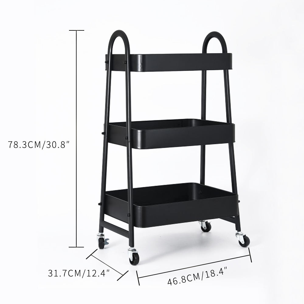 Heliotropic Home Etajera pe roti CLEVER, metal, negru