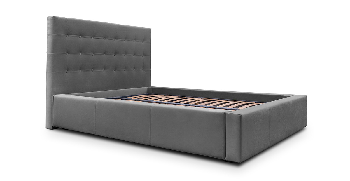 Caracteristici si atuuri: ✓ Patul include somieră cu sistem rabatabil, care are lamele din lemn de fag, care permite menținerea aerisirii corecte a saltelei și acces facil la lada de depozitare ✓ Spațiul de depozitare al patului este foarte generos, punând la dispoziție întreg perimetrul patului ✓ Cadrul patului are în componența sa un strat generos de spumă poliuretanică, oferind camerei o senzație de volumetrie ✓ Fermitatea spumei din componență asigură longevitatea produsului în timp și păstrarea calităților estetice ✓ Stofa din care este realizat patul are o textură catifelată, cu reflexii ce oferă un aspect elegant și modern