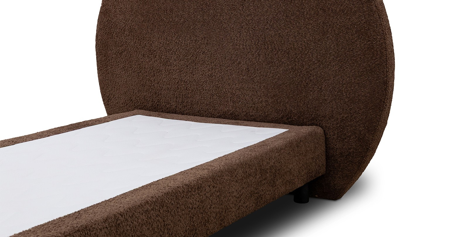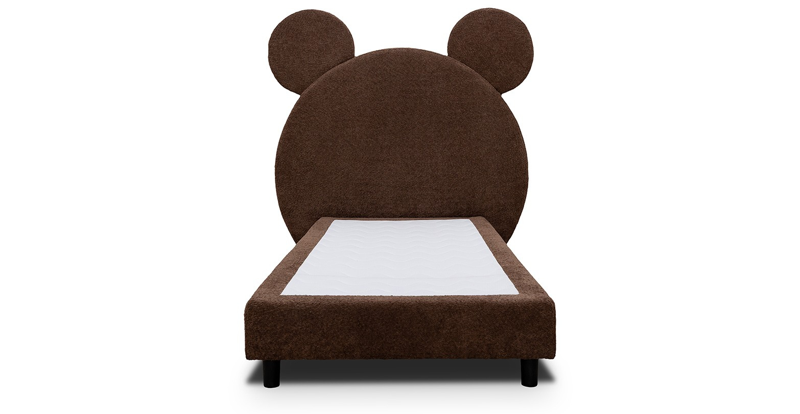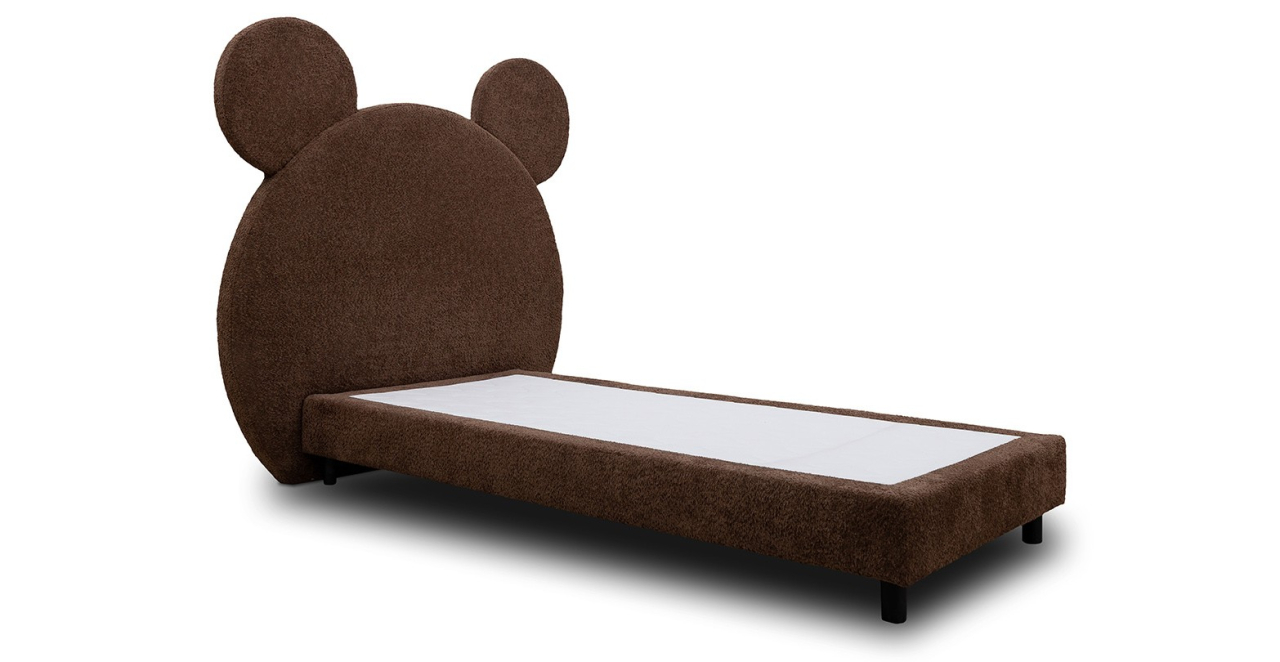 Pat tapitat, cu design rotunjit si detalii în forma de urechi.
