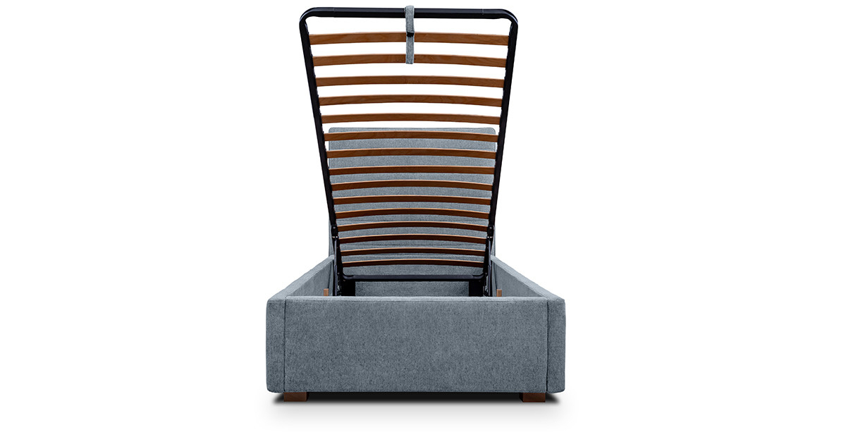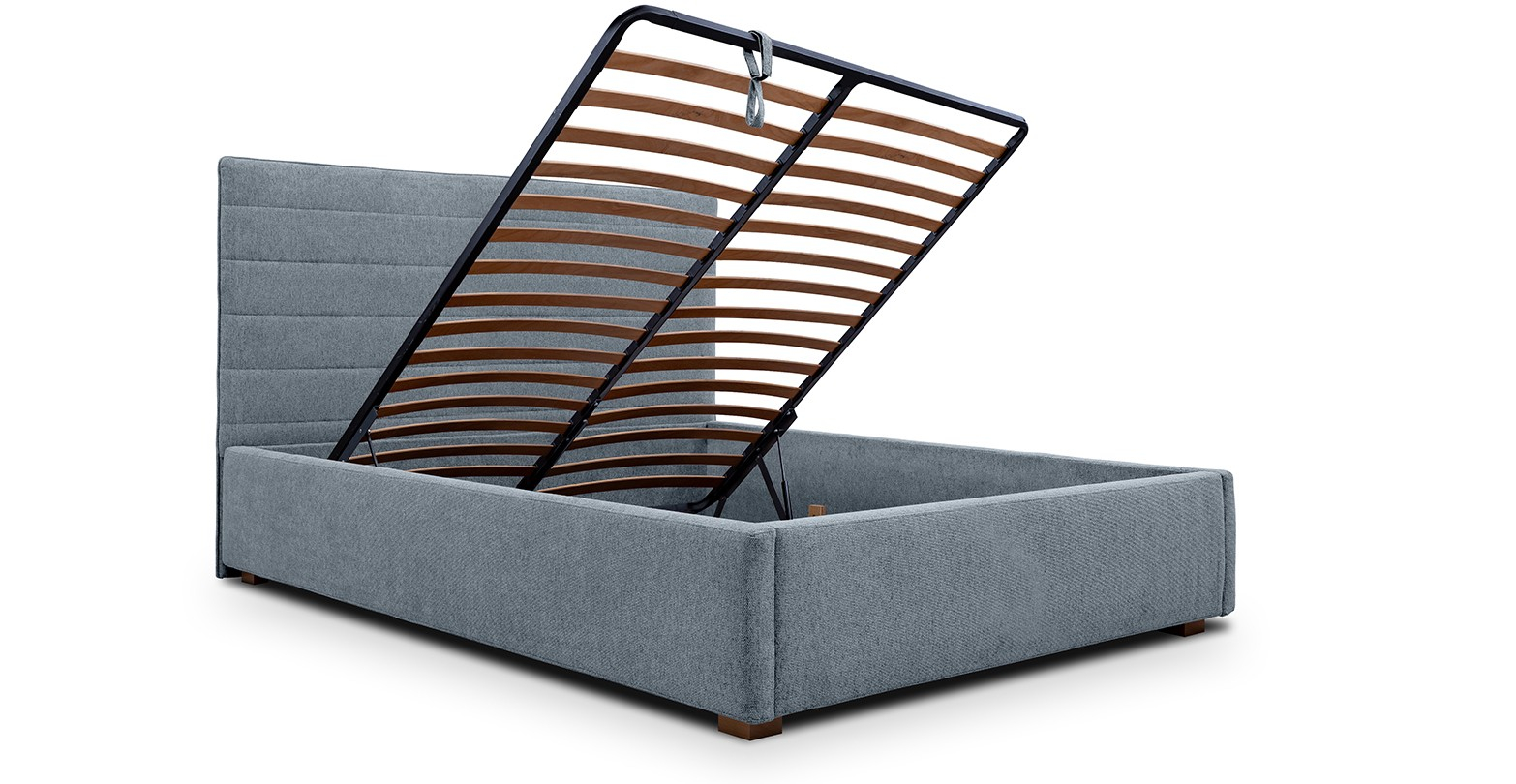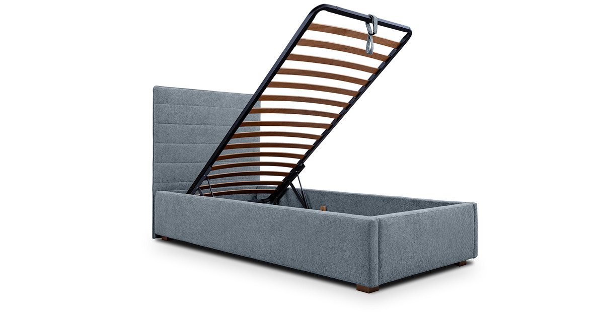 Caracteristici si atuuri: ✓ Patul include somieră cu sistem rabatabil, care are lamele din lemn de fag, care permite menținerea aerisirii corecte a saltelei și acces facil la lada de depozitare ✓ Spațiul de depozitare al patului este foarte generos, punând la dispoziție întreg perimetrul patului ✓ Tetiera și cadrul patului au dimensiuni mai înguste, fiind ideale pentru integrarea în spațiile cu dimensiuni mai reduse ✓ Fermitatea spumei din componența cadrului asigură durabilitatea produsului în timp și păstrarea calităților estetice ✓ Stofa din care este realizat patul are o textură moale și plăcută la atingere, oferind o senzație ridicată de confort