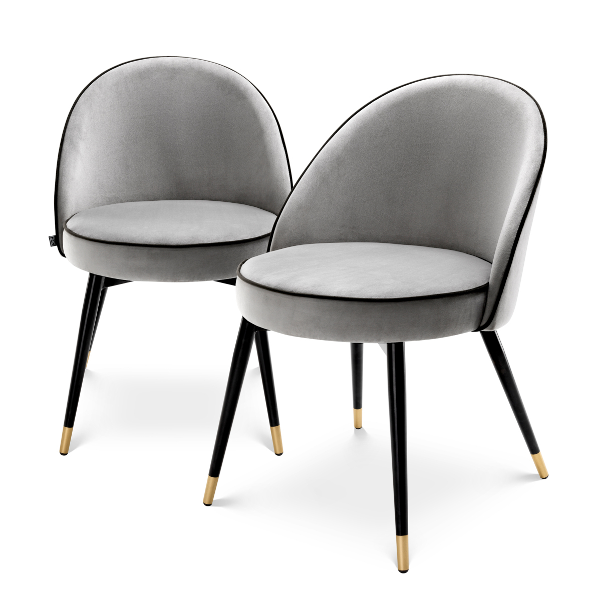 Detalii: picioare cu finisaj negru și alamă, Roche catifea gri deschis, roche piping gri închis