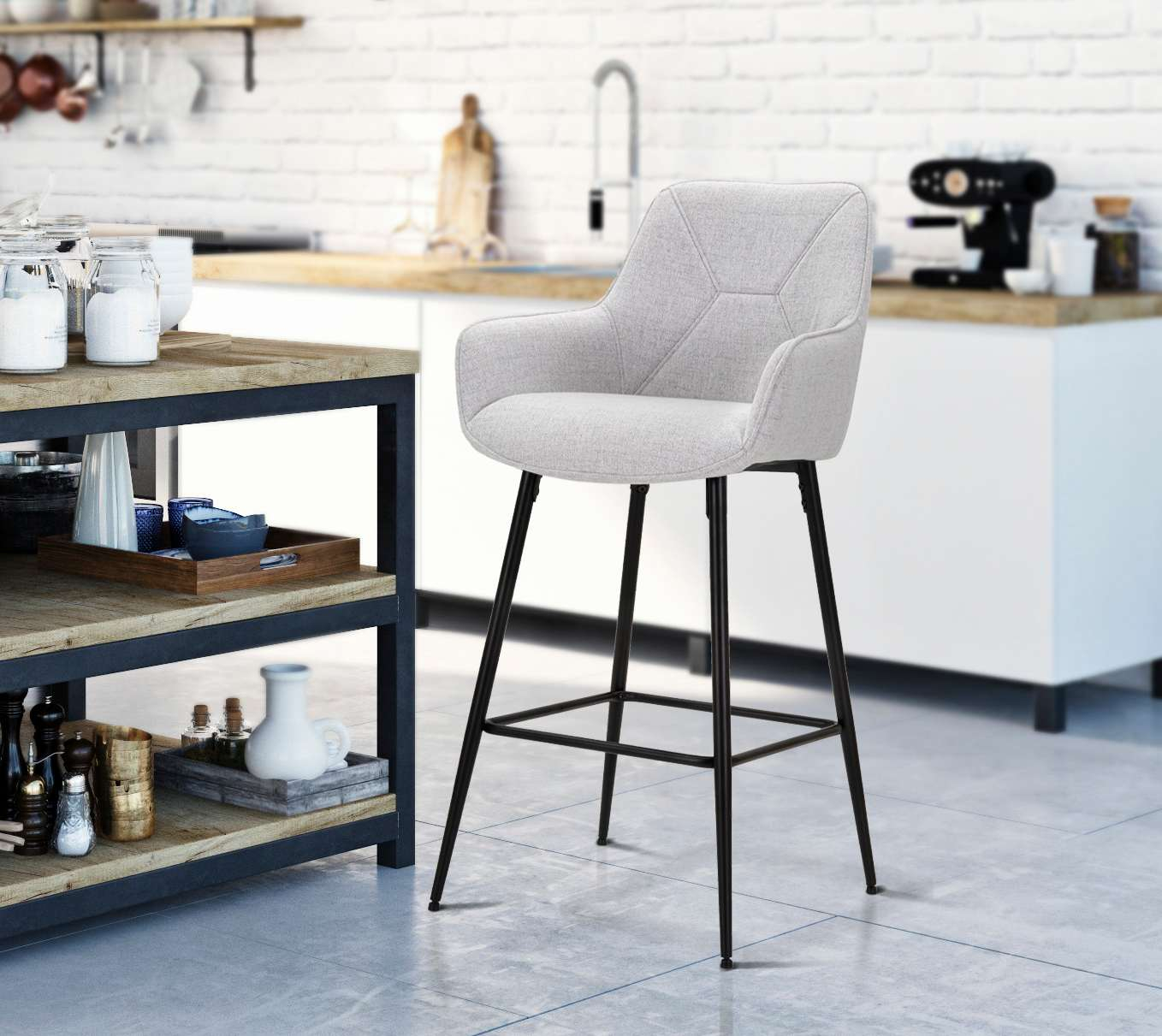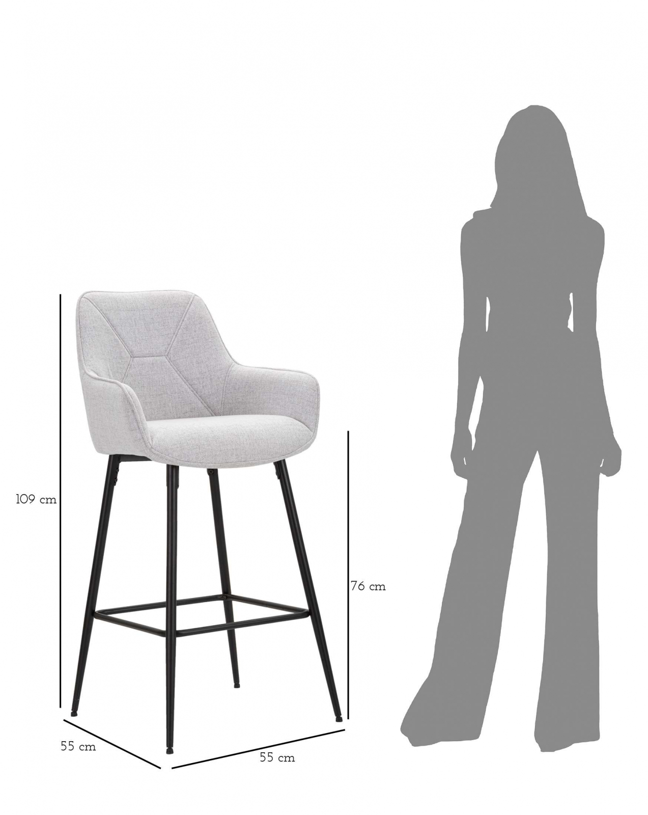 Set 2 scaune de bar Grey, Lemn/Metal/Fibre sintetice, Gri/Negru, 109x55x55 cm