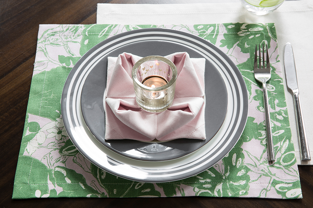 Suport farfurii Bente, Bumbac/Panza, Verde/Roz, 40x29 cm