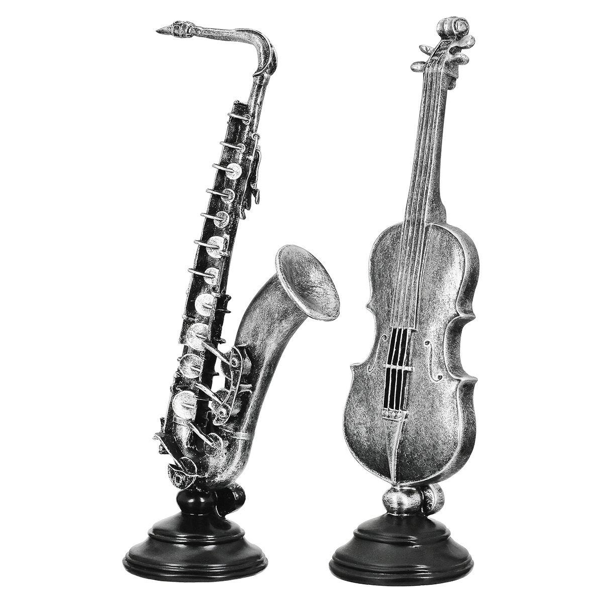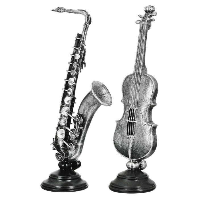 Sculptură, Violoncello & Saxofon, Polirășină, argintie, PU 2, 2 buc. asortate, L. 10 cm, L. 14,5 cm, H. 36,5 cm