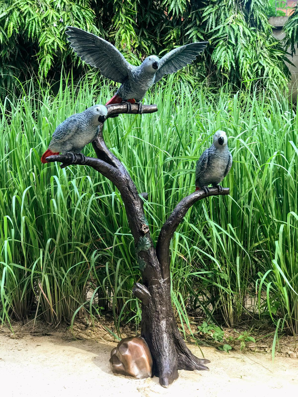 Thermobrass Statuie 3 papagali vrezi in copac, Beonz, 145 X 60 X 86 cm