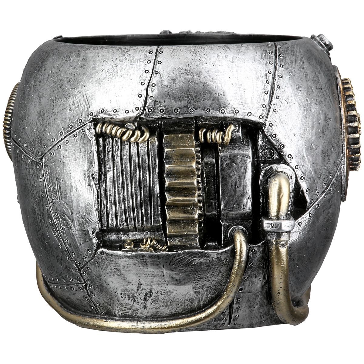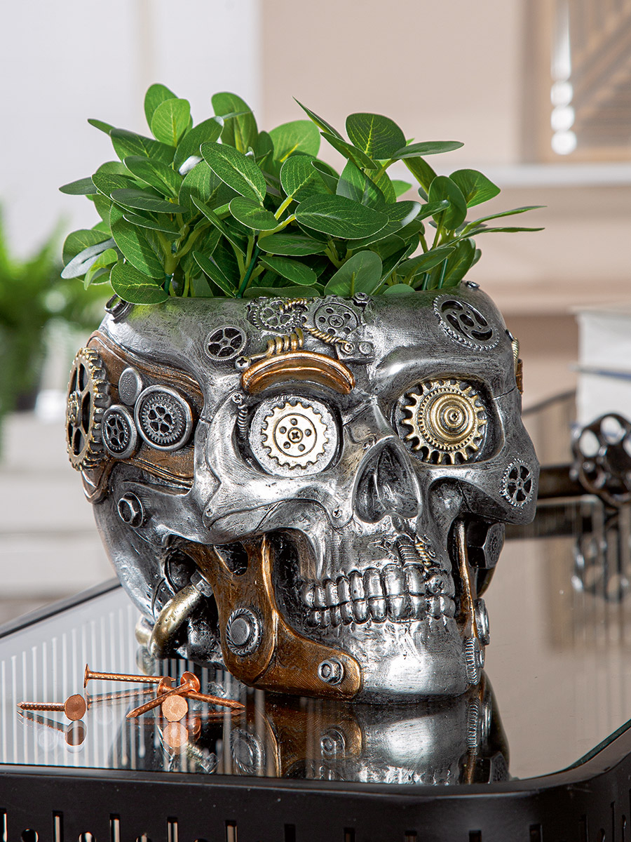 Cachepot, Skull, Steampunk skull planter, Motiv Gear, Polyresin, argintiu, PU 1, L. 23 cm, L. 17,5 cm, H. 14 cm