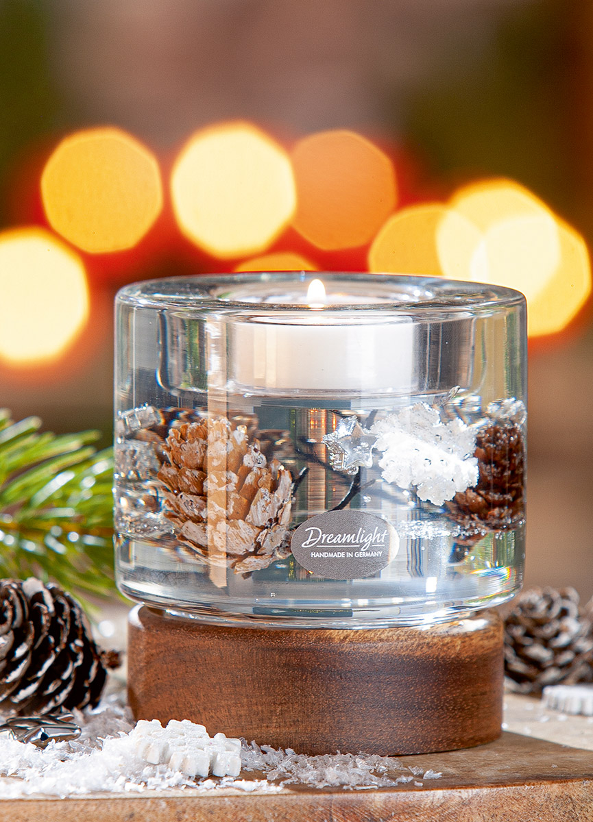 Dreamlight, Suport lumanare tip tealight, Colum Classic pe baza de lemn, „Poveste de iarna”, Lemn, maro, PU 4, H 9 cm, A. 8,5 cm
