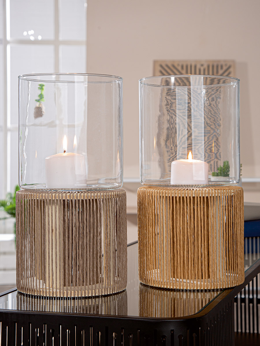 GILDE Suport lumanare, cilindric, Samui, Hârtie, Lemn, maro, PU 2, 2 buc. asortate, H. 32 cm, D. 16,5 cm