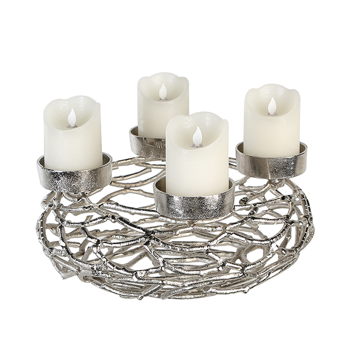 Suport lumanare, TWIGS, Nichel, Argintiu, D35 cm