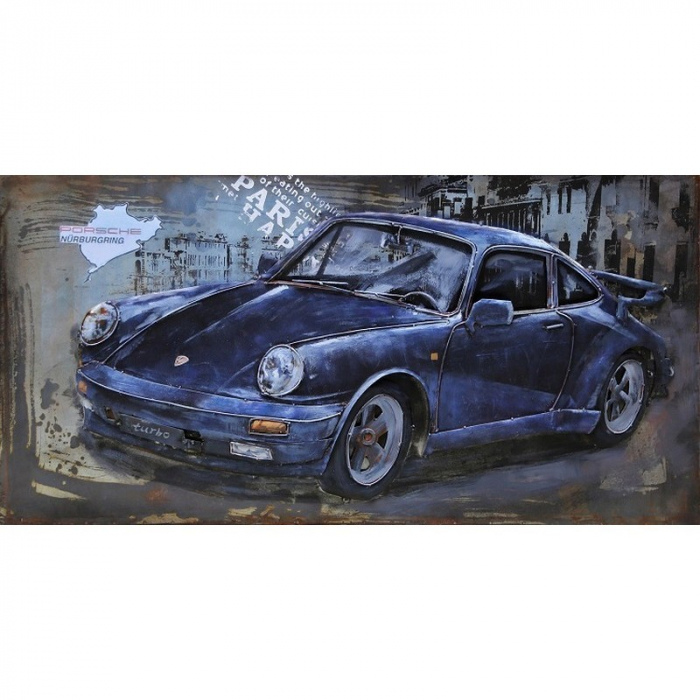 Blue sportcar este un tablou metalic 3D, o imagine in relief ilustrand o veche masina sport.