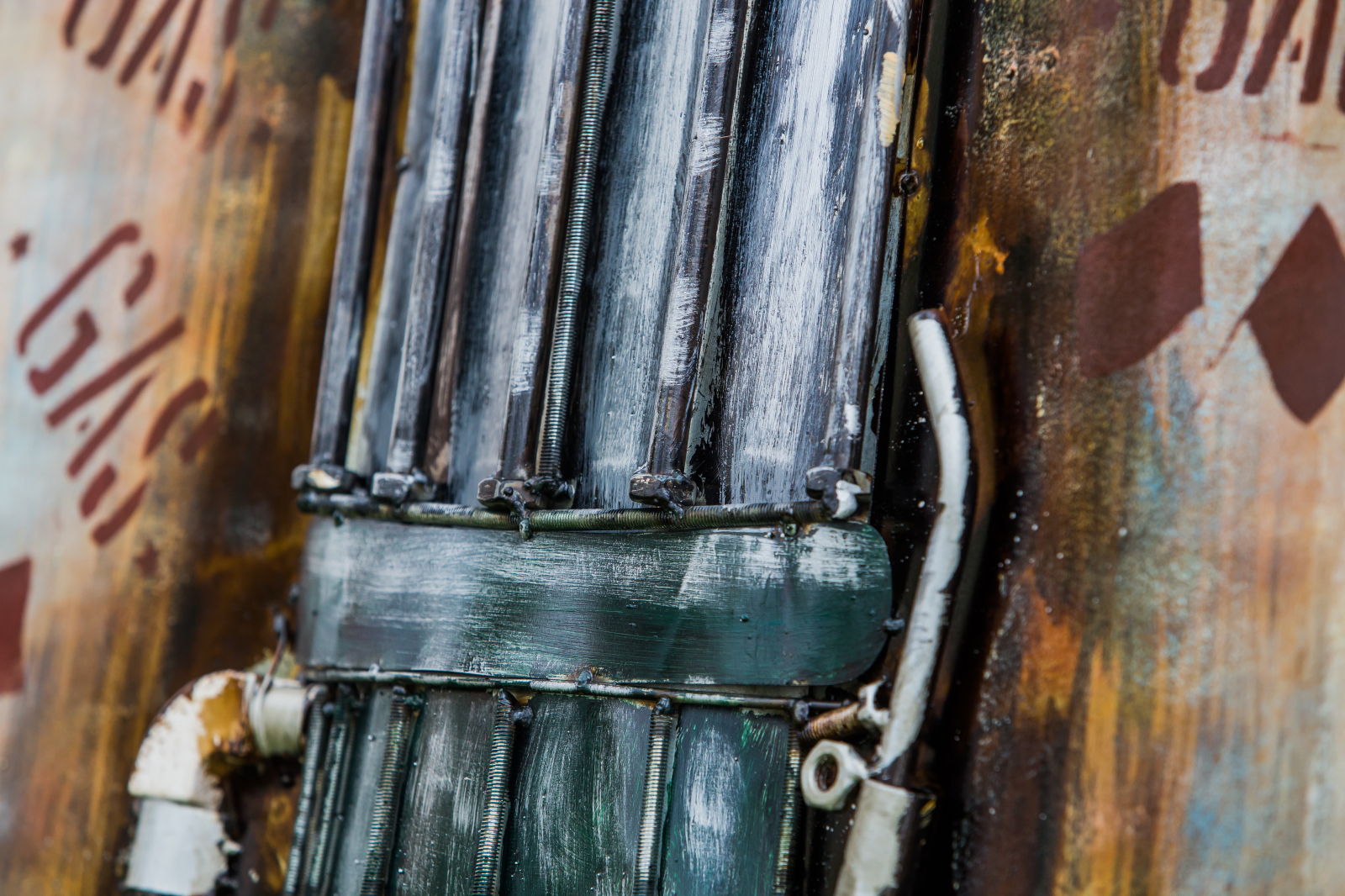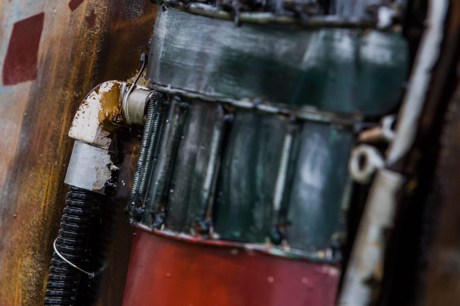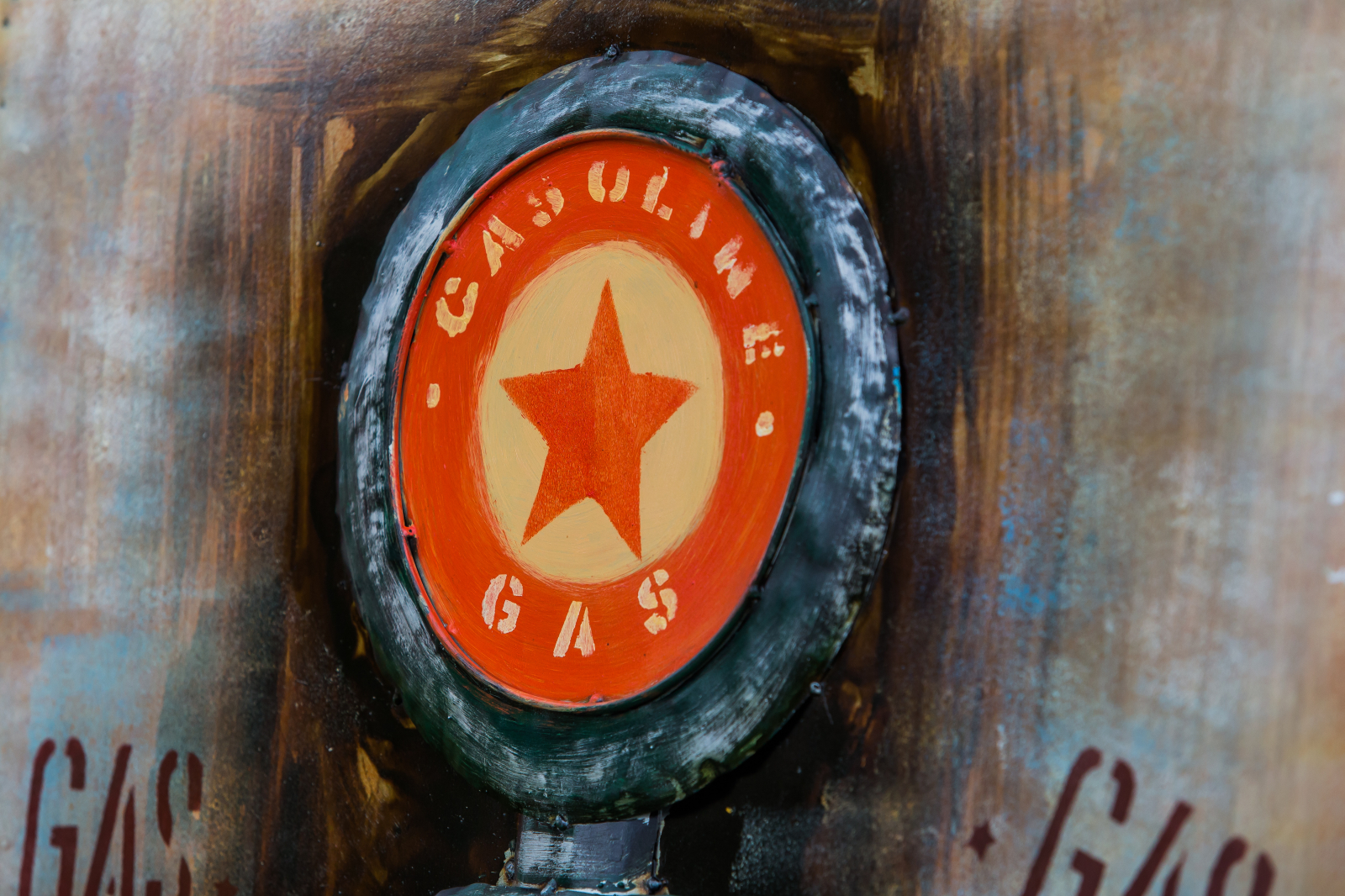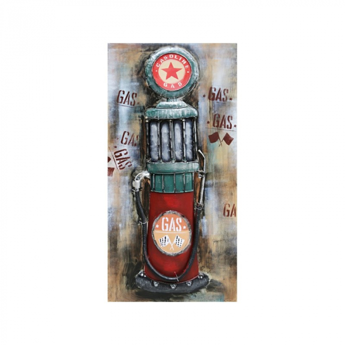 Pump este un tablou metalic 3D, o imagine in relief ilustrand o pompa de alimentare.