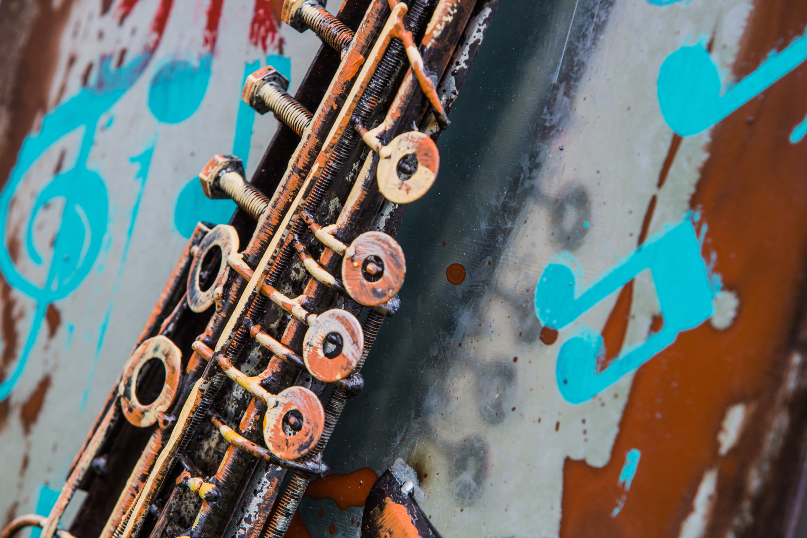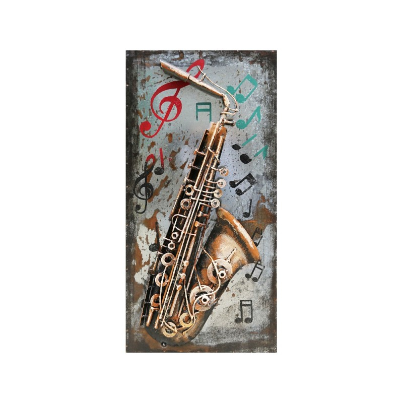 Saxophone este un tablou metalic 3D, o imagine in relief ilustrand un saxofon.