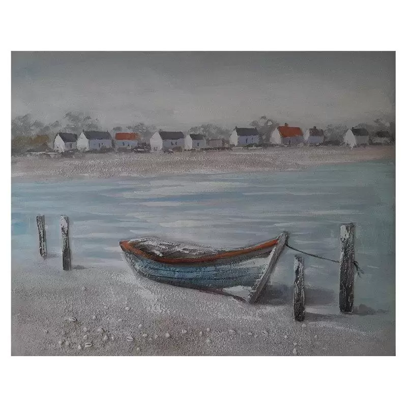 Boat on Beach este un tablou canvas , o imagine in relief ilustrand o barca pe plaja.
