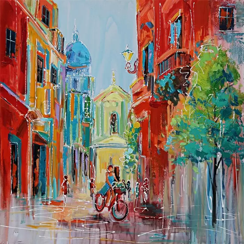 Colorful city este un tablou canvas, o imagine in relief ilustrand un oras colorat.