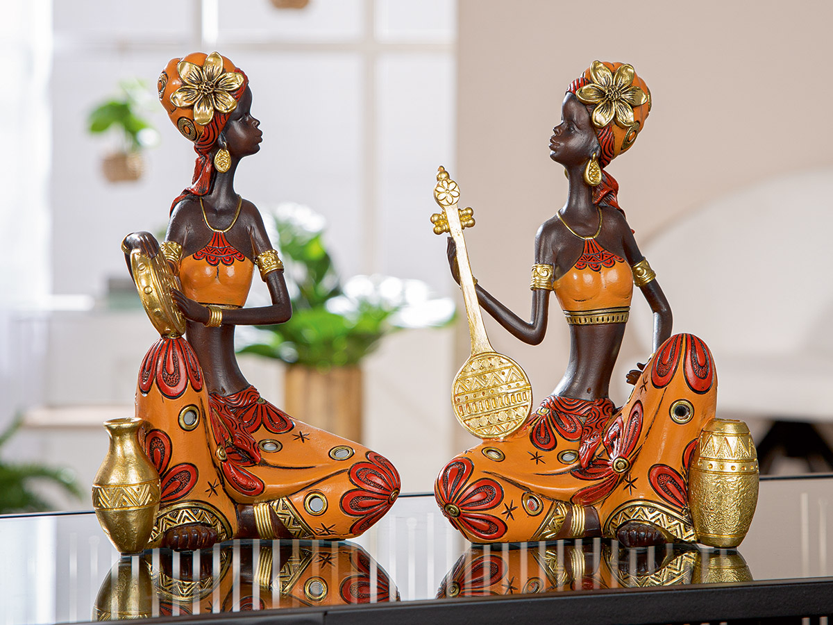 Figurină, Femeie, African Beat, Motiv Muzician, Polirășină, maro, PU 2, 2 buc. asortate, L. 10 cm, L. 15 cm, H. 22 cm