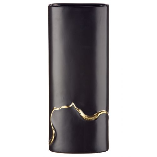 GILDE Vaza Creolo, Ceramica, Negru/Auriu, 8x14x34.5 cm