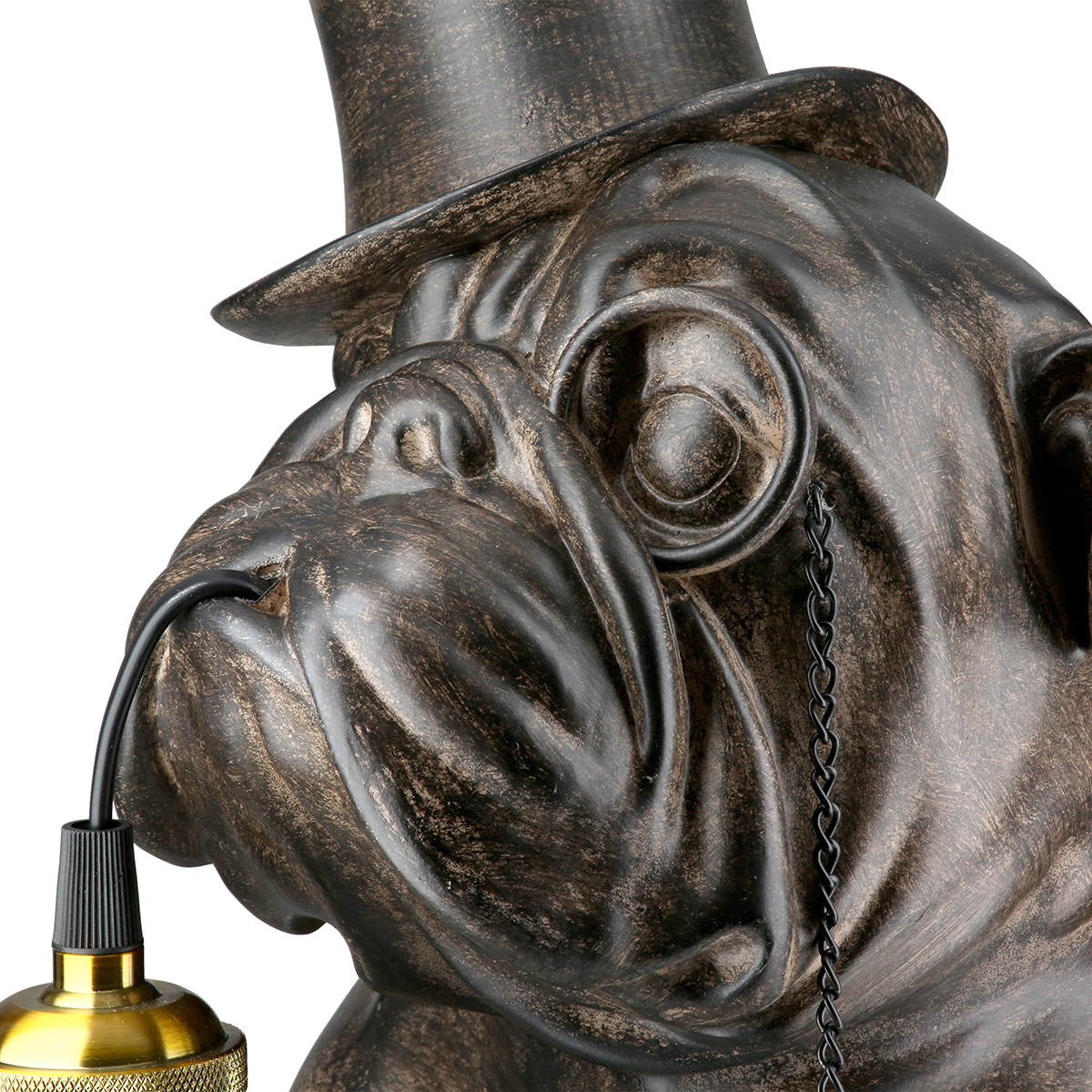 Lampă de masă, Pug, Pug cu monoclu, Pălărie de top, Polirășină, maro, PU 1, L. 34 cm, L. 24,5 cm, H. 41,5 cm