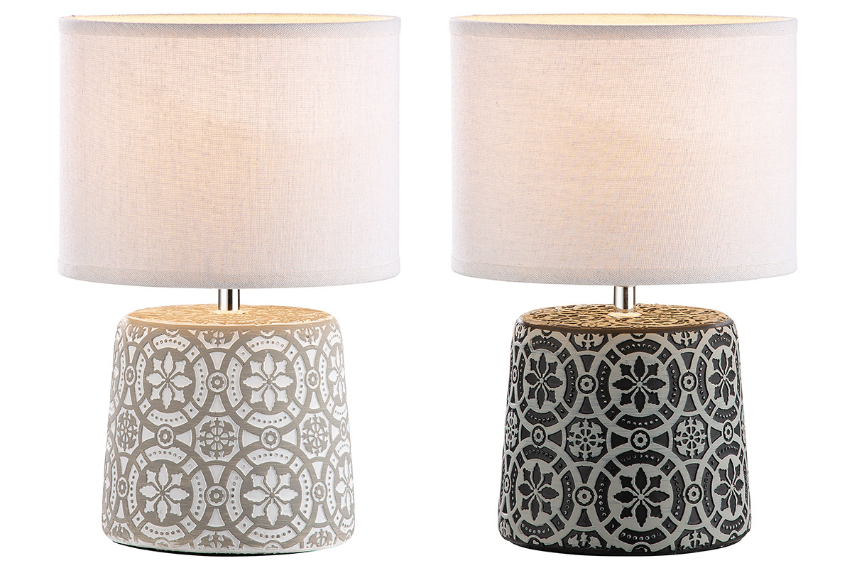 GILDE Set 2 veioze Mandala, Ciment, Alb/Negru, 16.5x23x36x28 cm