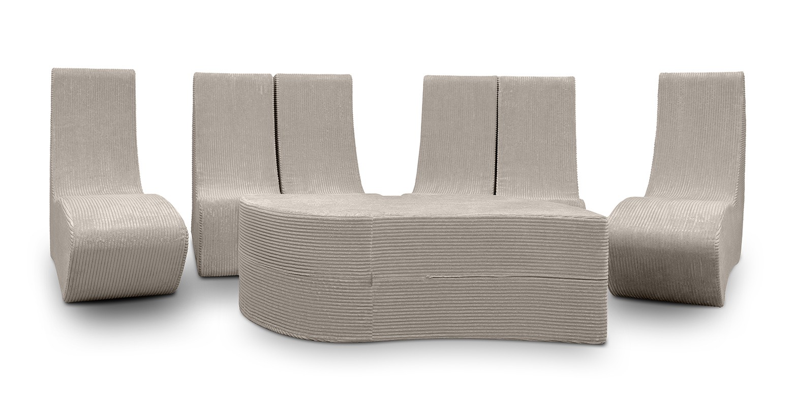 2 sezlonguri, 4 fotolii este tot ce ai nevoie pentru a forma o canapea confortabila, disponibila in 5 culori. Îi poți schimba culoarea în câteva minute dacă achiziționezi mai multe huse.