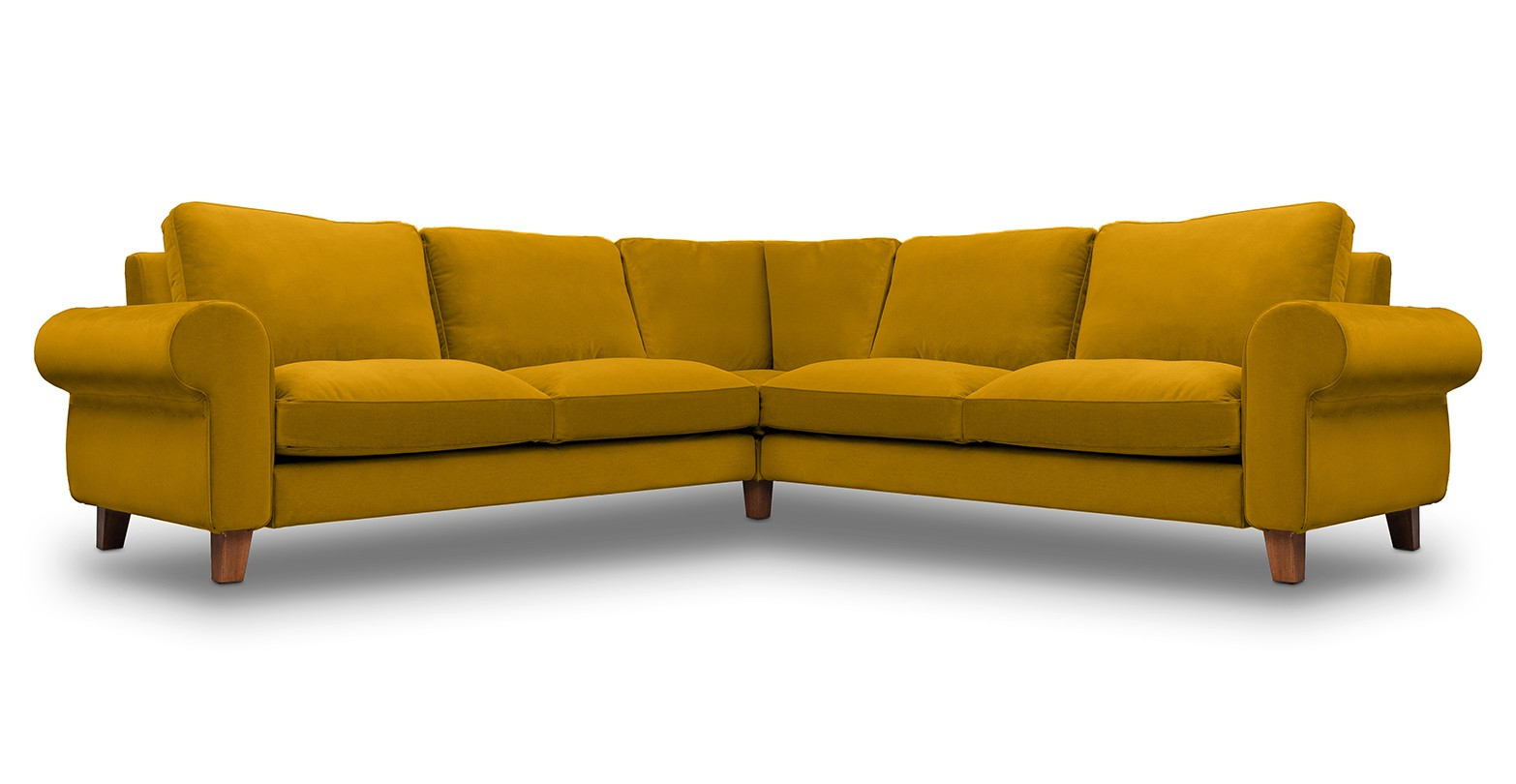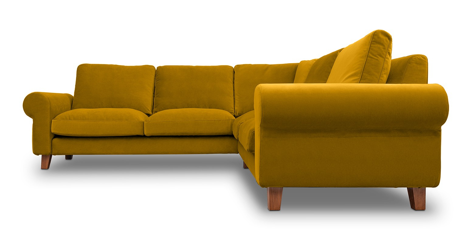 Coltar fix de 4 locuri, cu brate rotunde si picioare de lemn, disponibila în mai multe variante de culori.