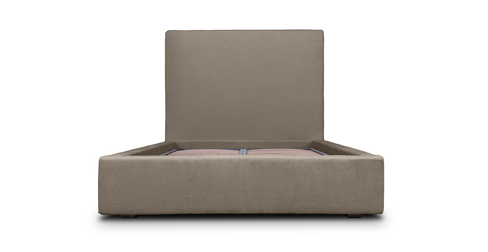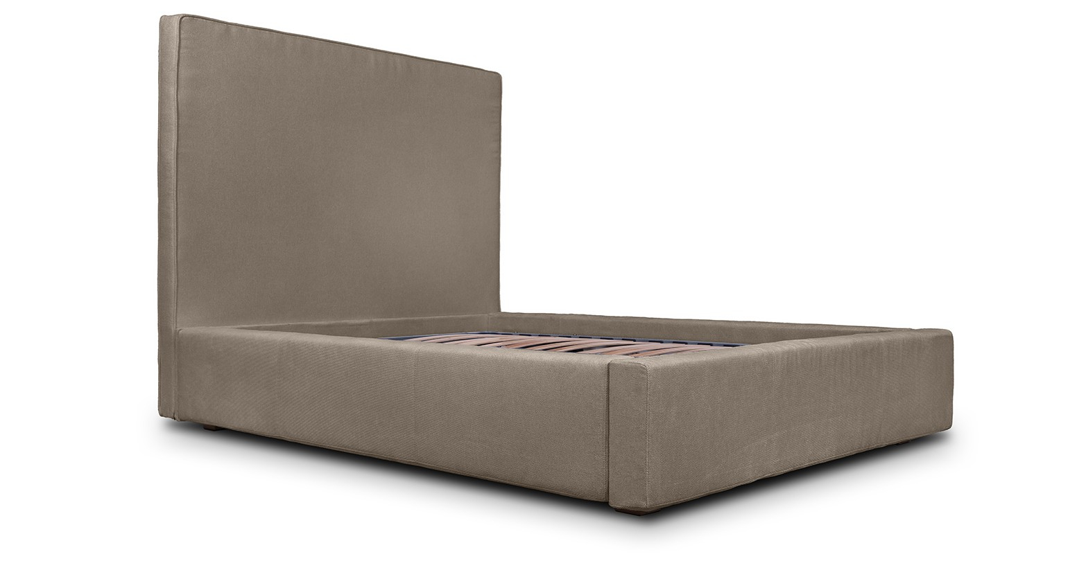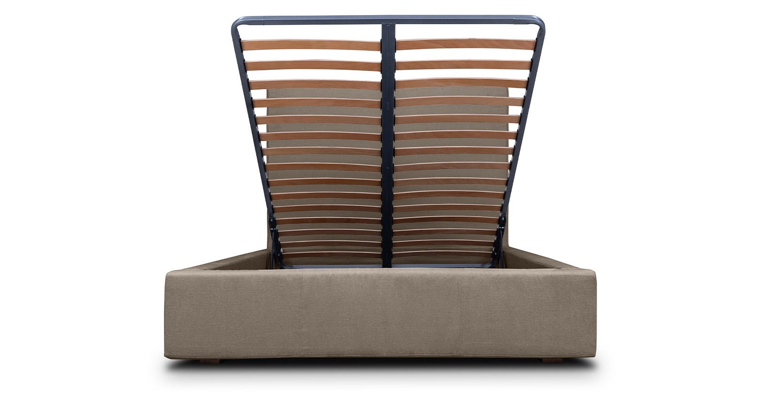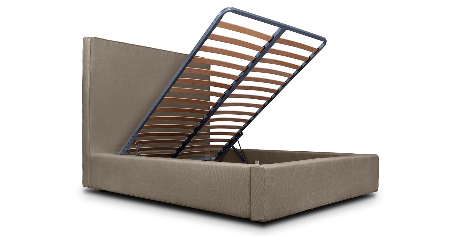 Pat tapitat, cu lada de depozitare si somiera rabatabila disponibil în mai multe dimensiuni si variante de culori.