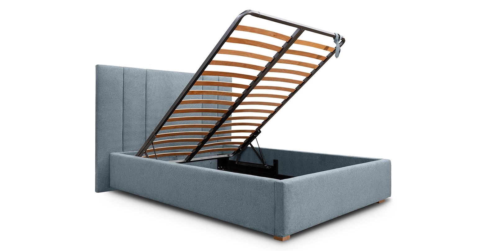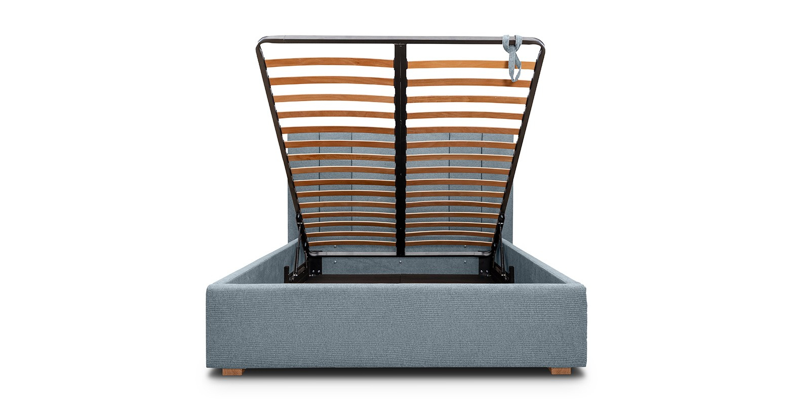 Caracteristici si atuuri: ✓ Design contemporan și elegant cu linii curate și proporții echilibrate, accentuate de tetiera tapițată vertical, ce adaugă profunzime și rafinament vizual. ✓ Somiera cu lamele din lemn stratificat asigură o susținere optimă a saltelei și un nivel ridicat de confort în utilizare. ✓ Spațiu generos de depozitare cu sistemul de ridicare asistat prin mecanism metalic ce oferă acces facil la compartimentul intern. ✓ Structura robustă din lemn și tapițeria textilă de înaltă calitate conferă rezistență în timp și un aspect elegant, ușor de integrat în orice ambient. ✓ Versatilitate estetică oferită de designul minimalist ce permite integrarea armonioasă în dormitoare moderne, contemporane sau scandinave. ✓ Mecanism de ridicare ușor de utilizat cu pistoane hidraulice ce asigură o deschidere lină și sigură, fără efort. ✓ Tapițeria rezistentă la uzură și murdărie se curăță ușor, menținând aspectul de nou.