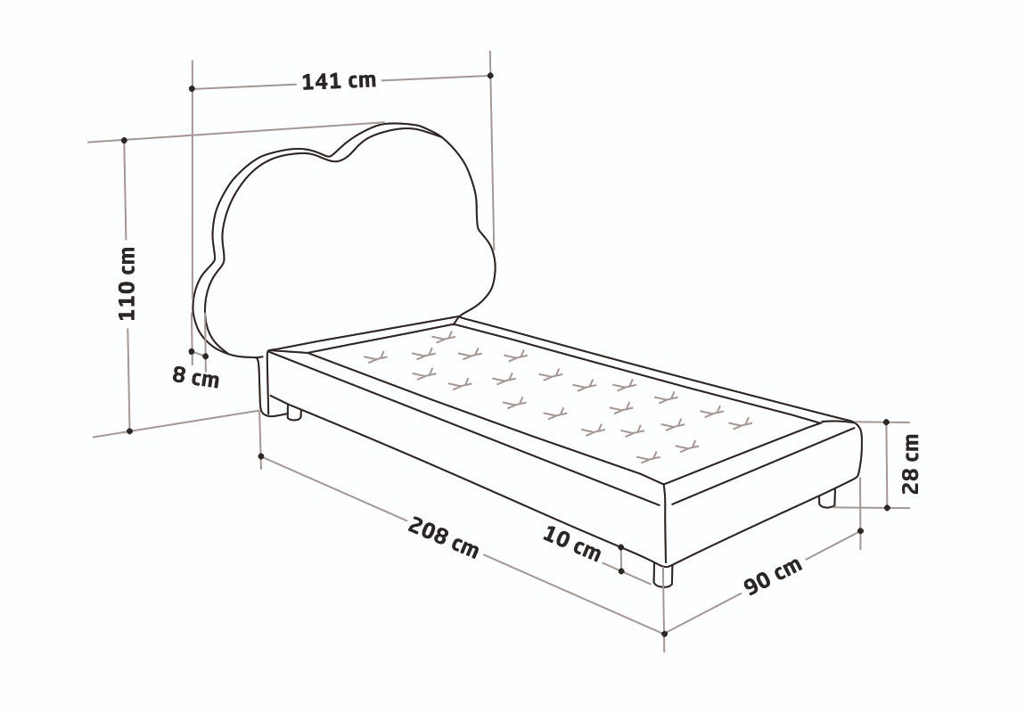 Patul Hugsy impresionează prin designul său jucăuș și modern, aducând un plus de personalitate oricărei camere. Tetiera în formă de nor creează un punct focal elegant și original, în timp ce husa moale și plăcută la atingere oferă confort sporit. Realizat din materiale de calitate și cu atenție la detalii, patul combină estetica cu funcționalitatea, fiind potrivit atât pentru camere moderne, cât și pentru cele cu accente creative sau minimaliste.