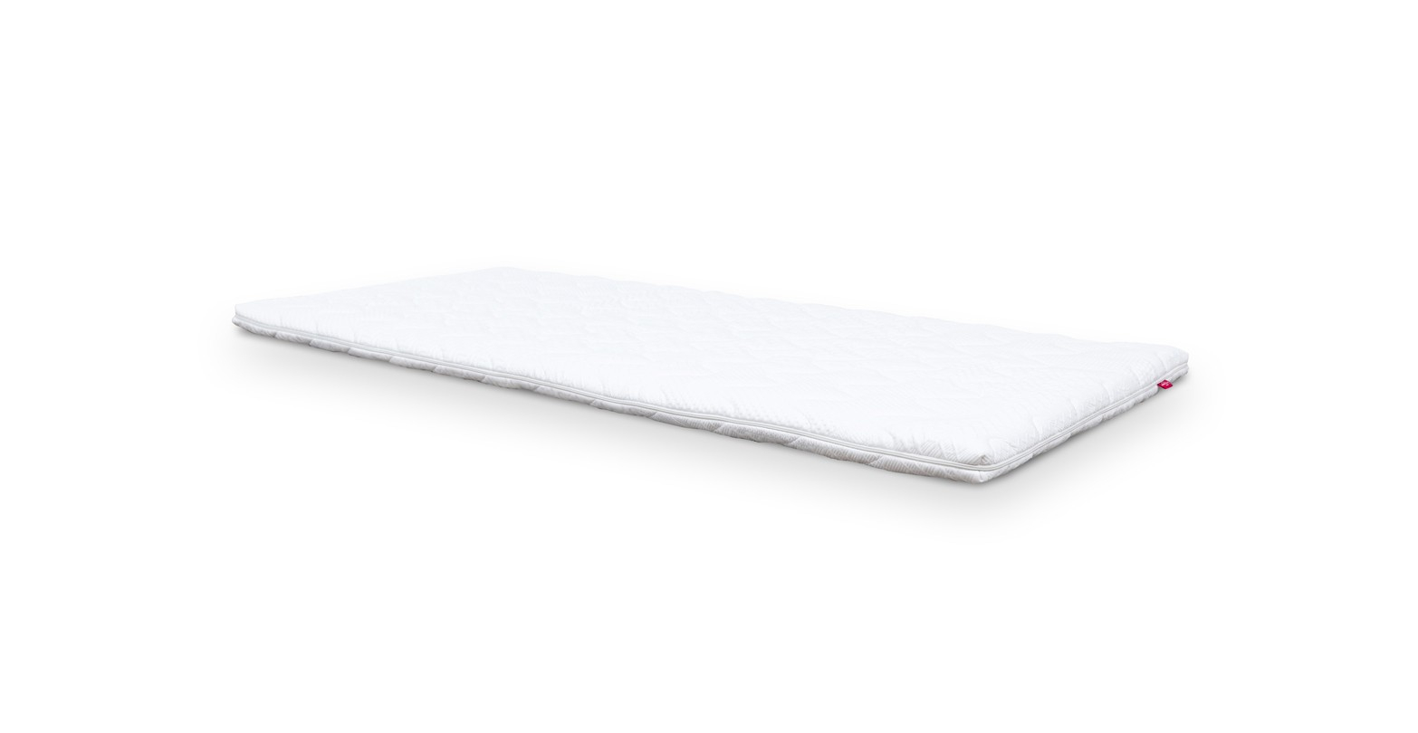 Topper din spuma tip latex, foarte moale, strat de biocristale si husa lavabila realizata din materii prime sustenabile.
